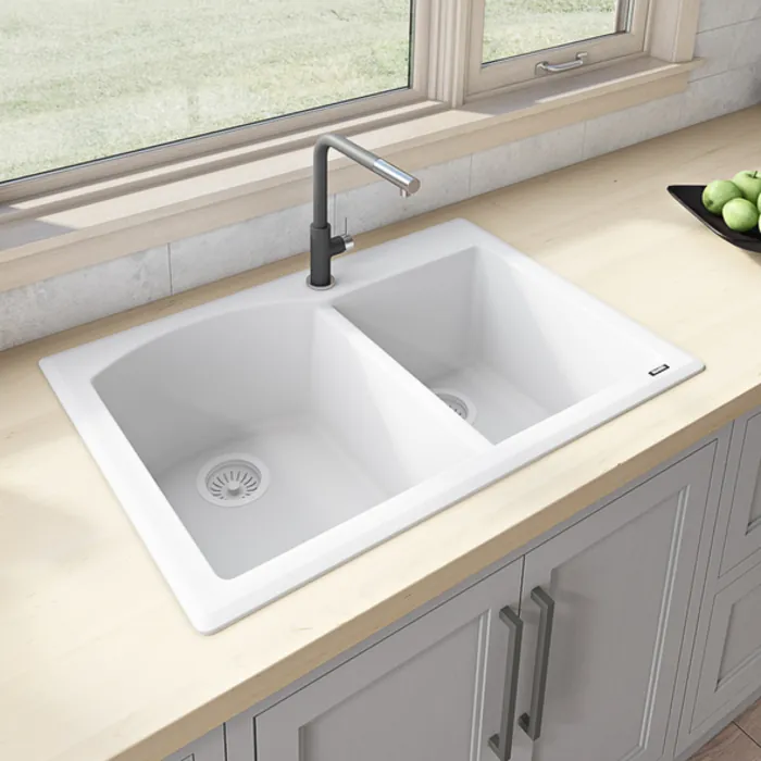 Ruvati 33 x 22 inch epiGranite Dual-Mount Granite Composite Double Bowl Kitchen Sink - Arctic White - RVG1344WH