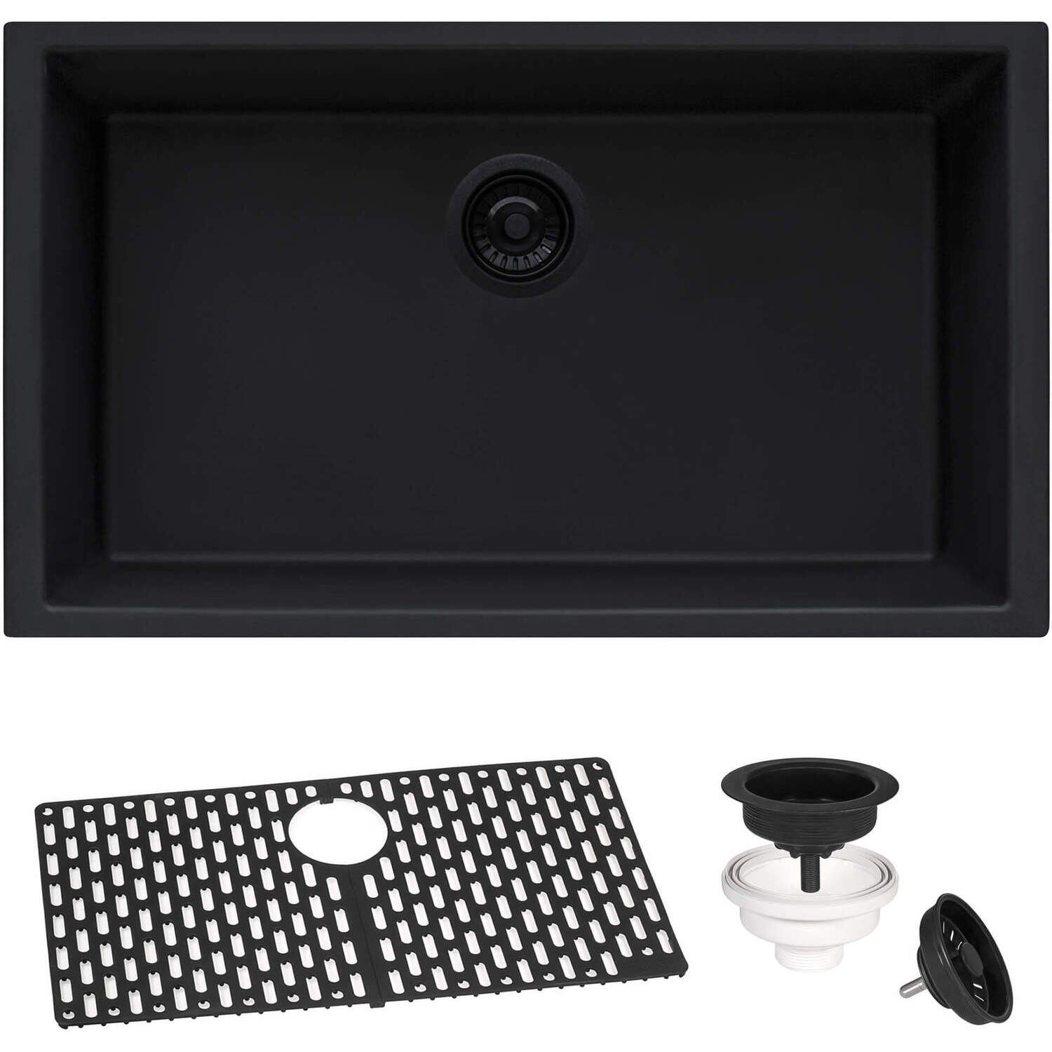 Includes matching black color strainer drain assembly. (Note: strainer is only for standard installation. If installing a Garbage Disposal unit, you have to use the drain flange that comes with the disposal).