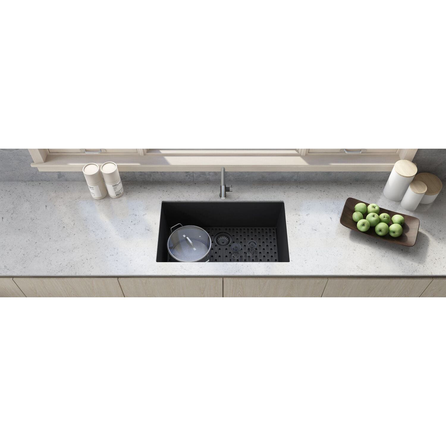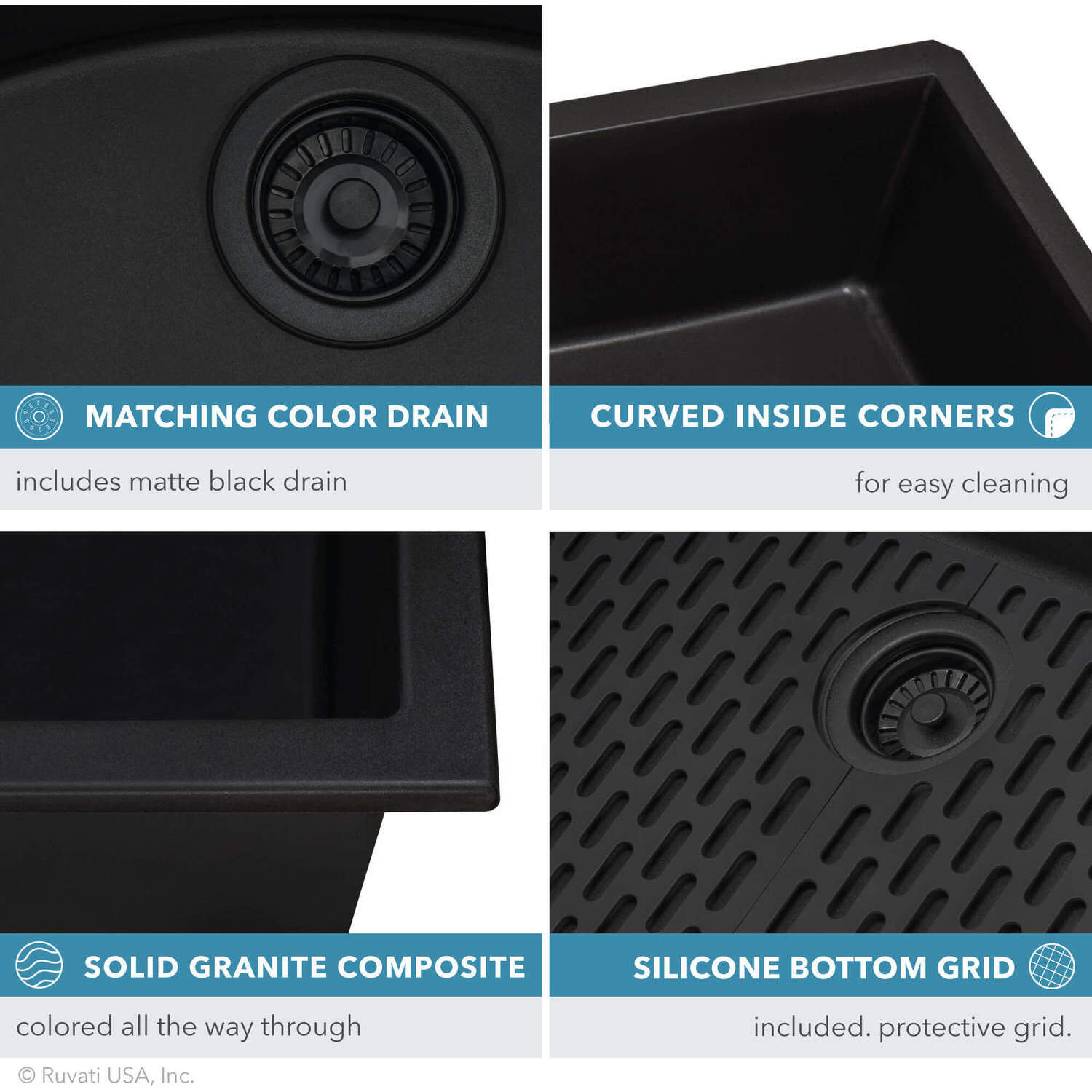 The sink is colored all the way through, for a rich and consistent look that will never discolor. Thick solid construction makes the sink naturally sound-absorbing and noise free.