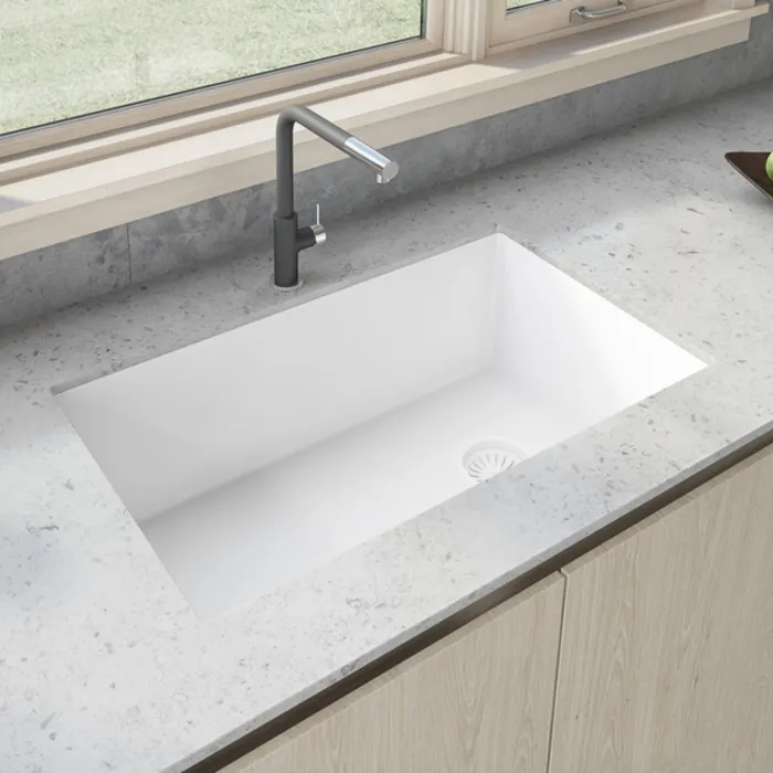 The sink is colored all the way through, for a rich and consistent look that will never discolor. Thick solid construction makes the sink naturally sound-absorbing and noise free.