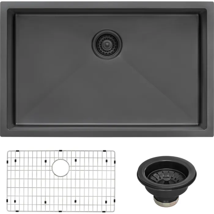 Ruvati 27-inch Undermount Gunmetal Black Stainless Steel Kitchen Sink 16 Gauge Single Bowl - RVH6127BL