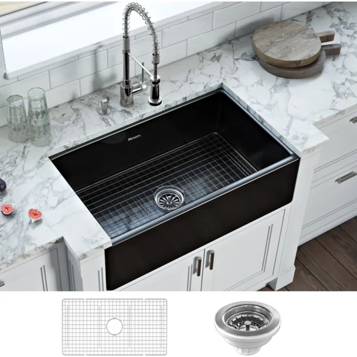 Ruvati 33 x 20 inch Fireclay Reversible Farmhouse Apron-Front Kitchen Sink Single Bowl - Gloss Black - RVL2300BK