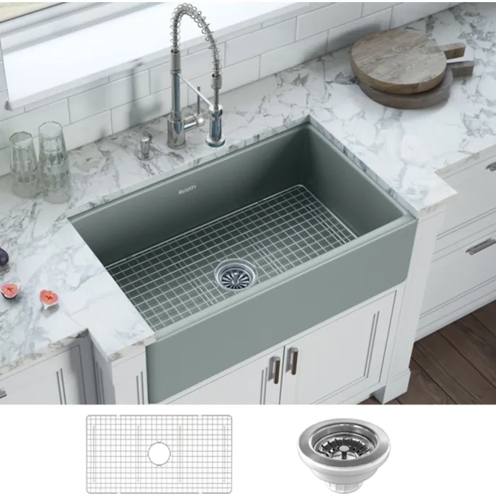 Ruvati 33 x 20 inch Fireclay Reversible Farmhouse Apron-Front Kitchen Sink Single Bowl - Horizon Gray - RVL2300GR