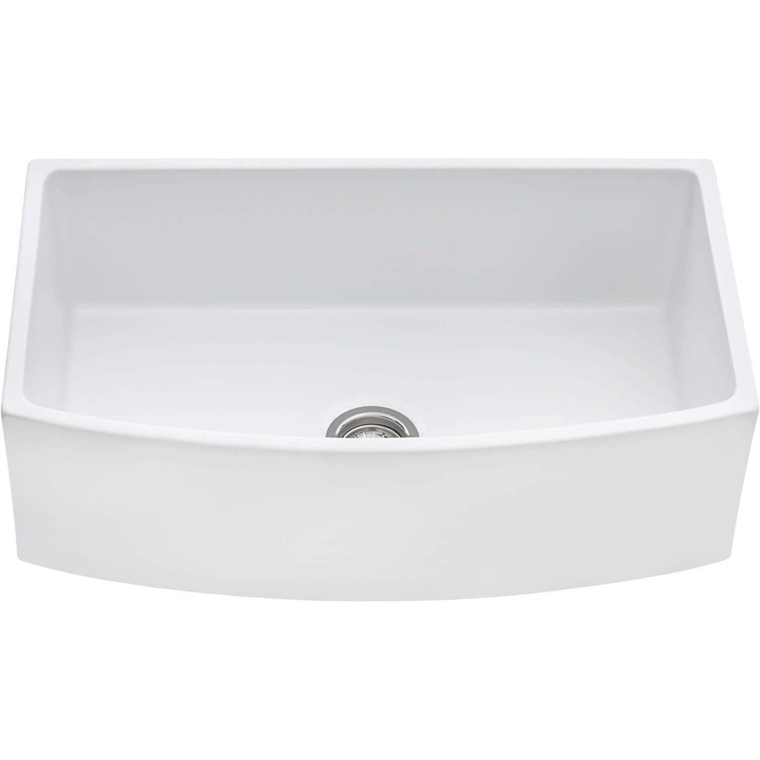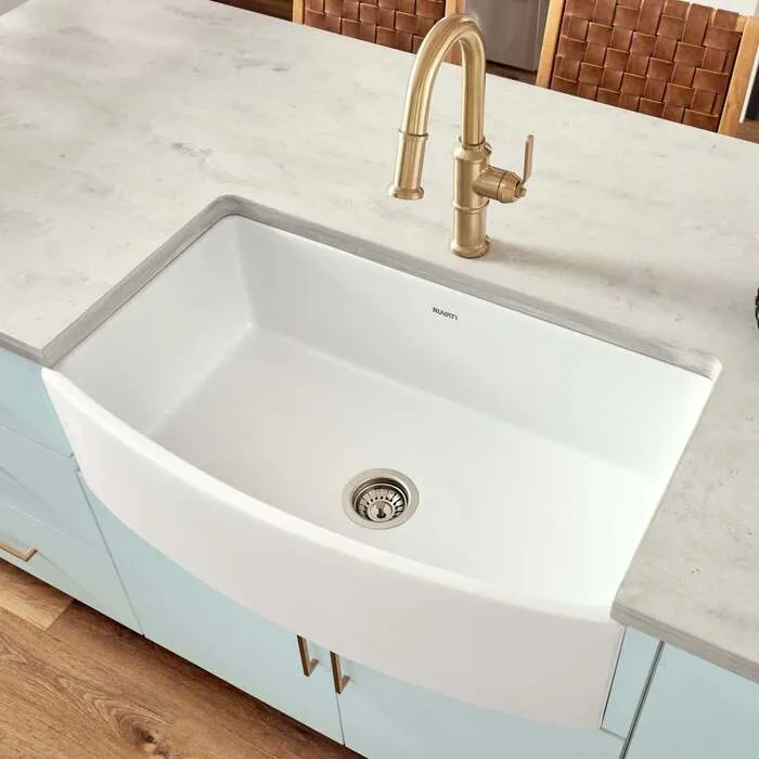 Ruvati 33 inch Fireclay White Farmhouse Kitchen Sink Bow Front Curved Apron Single Bowl - RVL2398WH, 664213537960