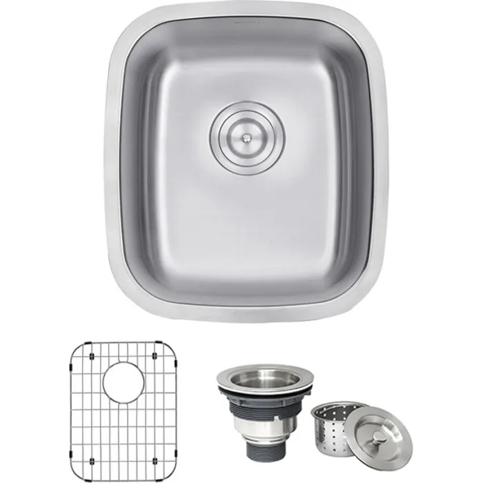 - Included in box: Sink, cut-out template, mounting brackets, rinse grid, basket strainer