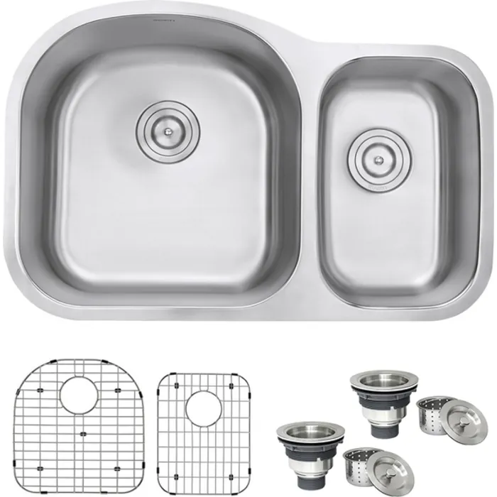 Ruvati RVM4400 Undermount 16 Gauge 32 inch Kitchen Sink Double Bowl - Left Configuration