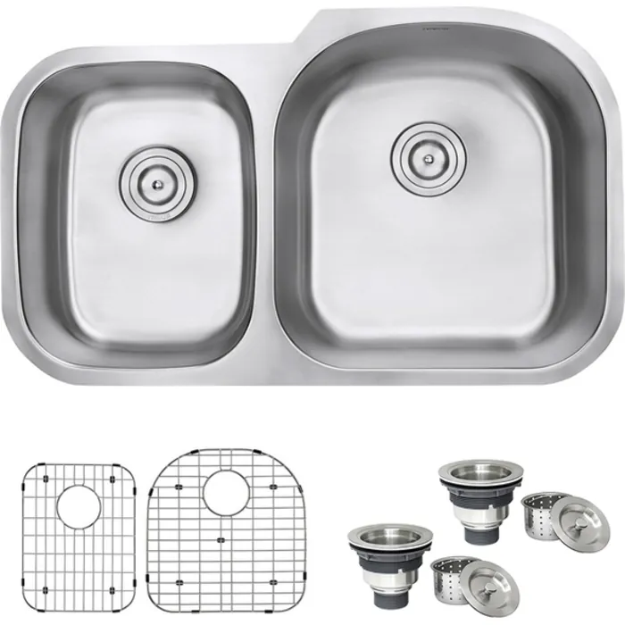 Ruvati RVM4605 Undermount 16 Gauge 34 inch Kitchen Sink Double Bowl - Right Configuration