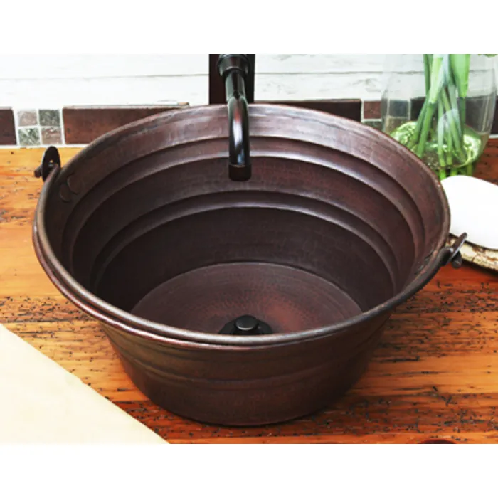 Sierra Copper Bucket Sink. Our Mexican hand hammered copper bowls are made by the best artisans in the heart of Mexico. This rustic bucket sink is a sure winner.