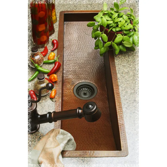 Sierra Copper Trough Sinks offer versatility to any design. The Chesapeake trough design is available in several sizes and can be made to any custom size. Utilize the trough sink in either the bathroom, bar sink or kitchen prep sink. Add an extra long trough in a master bath with double faucets for his and hers sink in one. Choose from our new wide range of colors and from our new hammering styles.