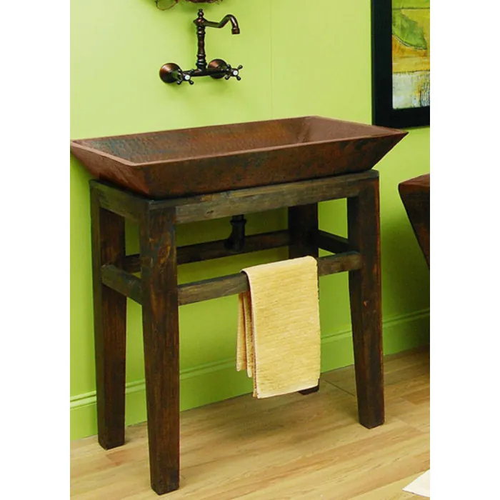 Sierra Copper Lexington Sink is an extra large rectangluar double thick vessel sink. Use on your oversized countertop or choose our optional wood base to display and use this oversize beauty.
