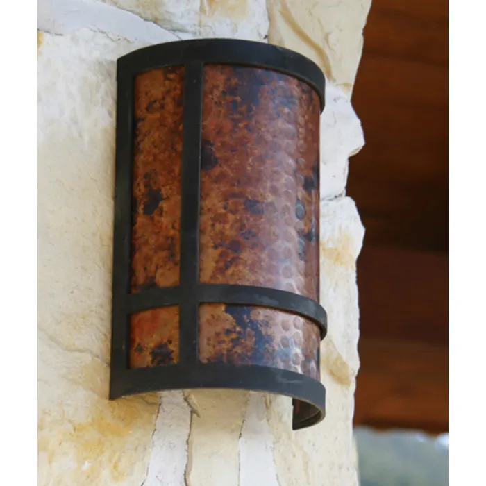Sierra Copper Tudor Sconce Small, great accent light with hammered shade and iron frame. Light and mounting kits are not included with this sconce.