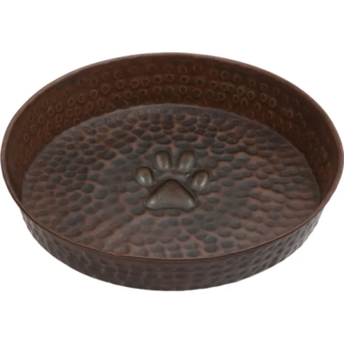 Sierra Copper Mexican hand crafted copper bowls are best for our shorter smaller best friends. Our shallow hand hammered pet bowls in copper are available in several different sizes with custom sizes available upon request. Add a design to the bottom of the bowl for a great look while your pet is waiting for his next meal. Also can be used in the kitchen for displaying fruit, etc or collecting change and storing keys. Our shallow bowl line can also be used as a manicure soaking bowl.