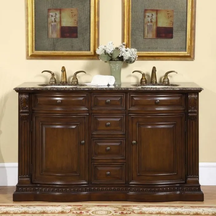 60" Double Sink Cabinet - Baltic Brown Top, Undermount Ivory Ceramic Sinks (3-hole)