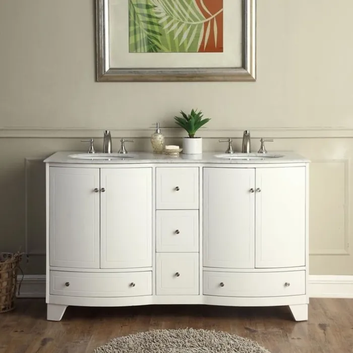 60" Double Sink Cabinet - Carrara White Marble Top, Under Mount, White Ceramic Sink (3 holes)