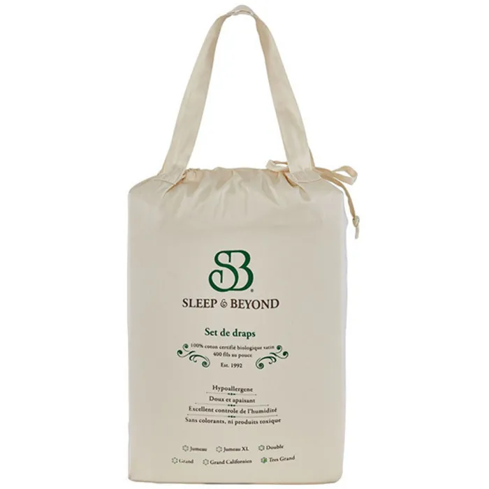 - Fabric: certified organic cotton sateen 300TC, ivory.