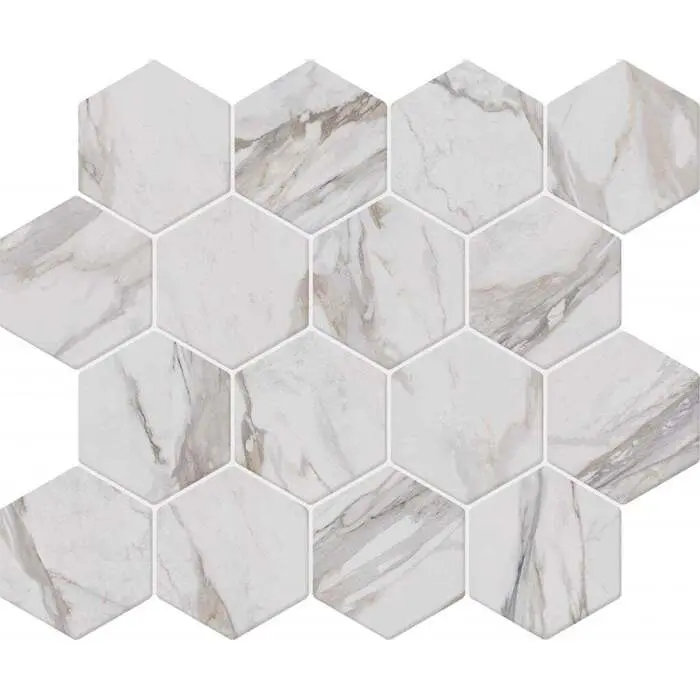 Soci Tile SSA-1219 Boho Hexagon Borghini Matte Mosaic Tile, Marble Look
