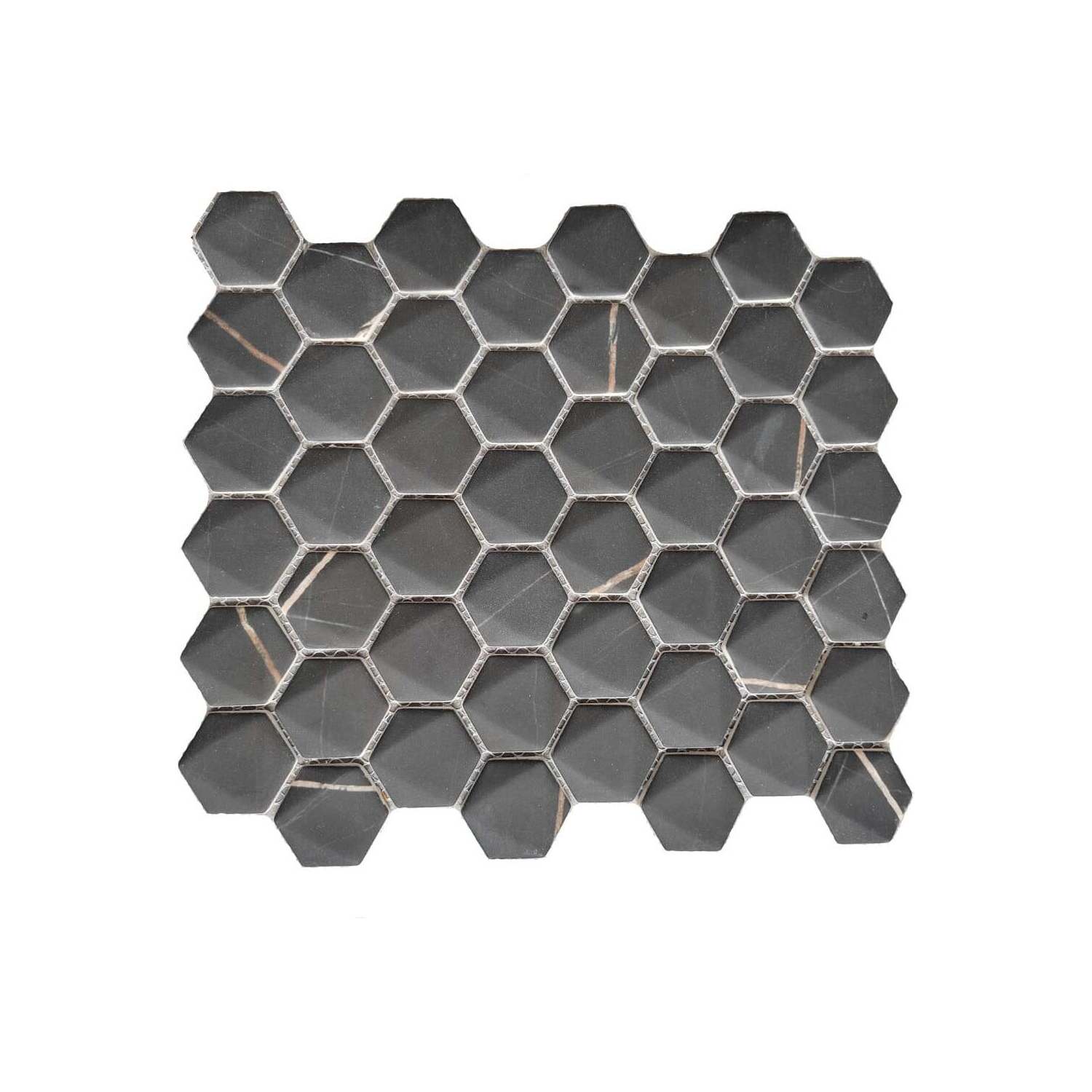 Soci Tile SSA-1232 Boho Hexagon Black Marble Matte Mosaic Tile