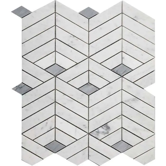 This mosaic tile features a sophisticated color palette that includes shades of gray, white, and black. To complement this tile: