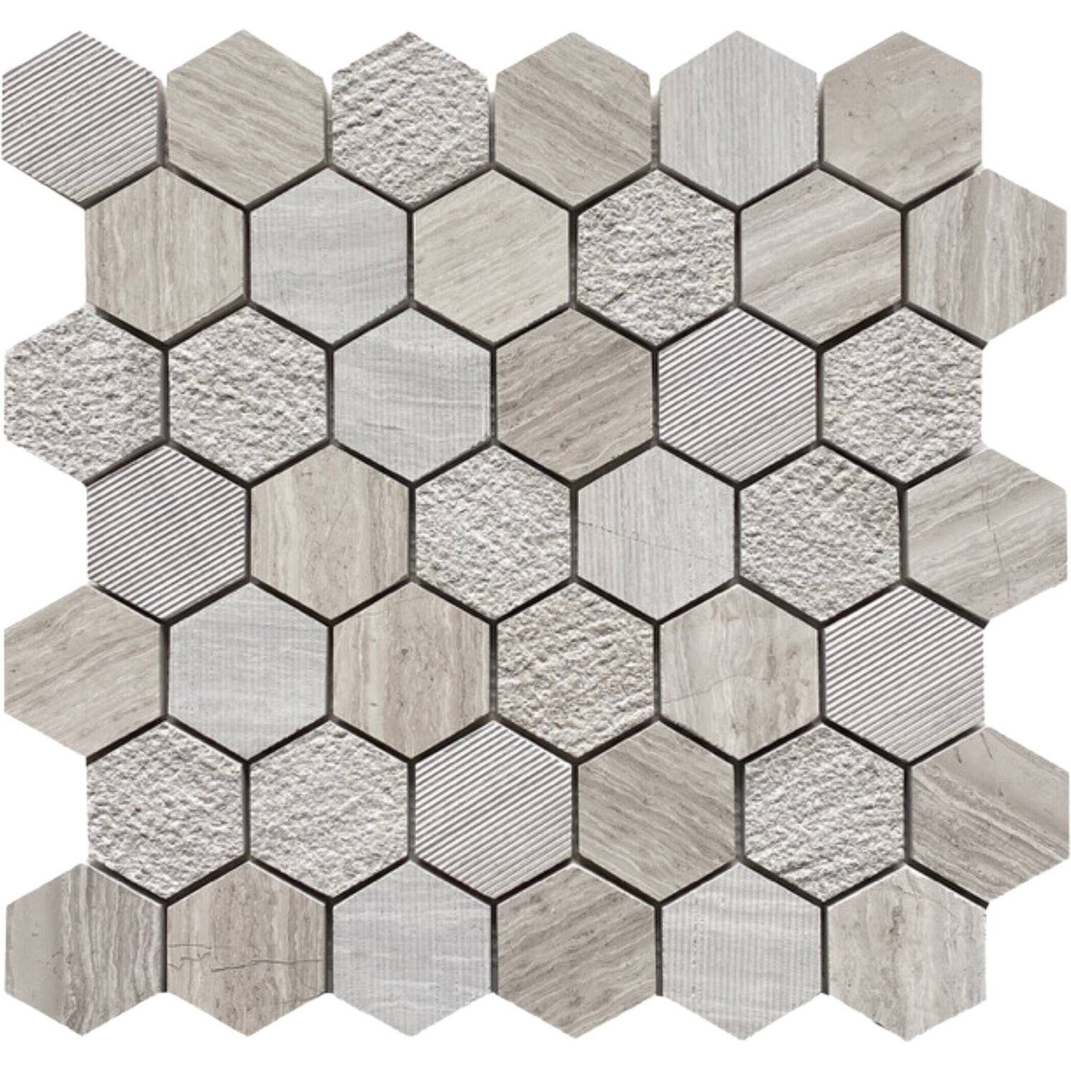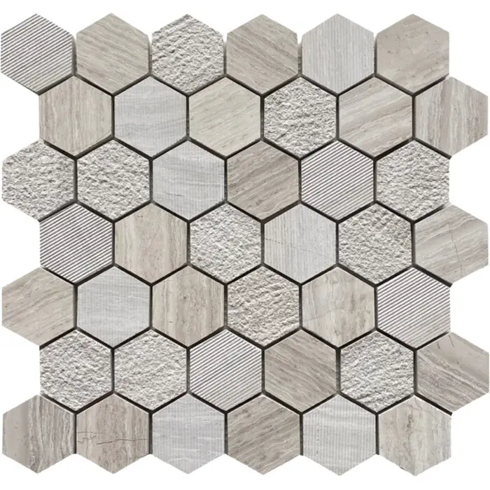 Soci tile SSH-411 Classic Series Textured Hexagon Wooden White Matte 2 inch Mosaic Tile