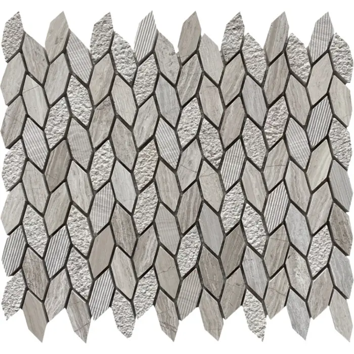 Soci tile SSH-415 Classic Series Textured Leaf Wooden White Matte Mosaic Tile