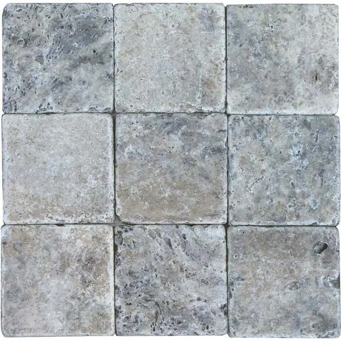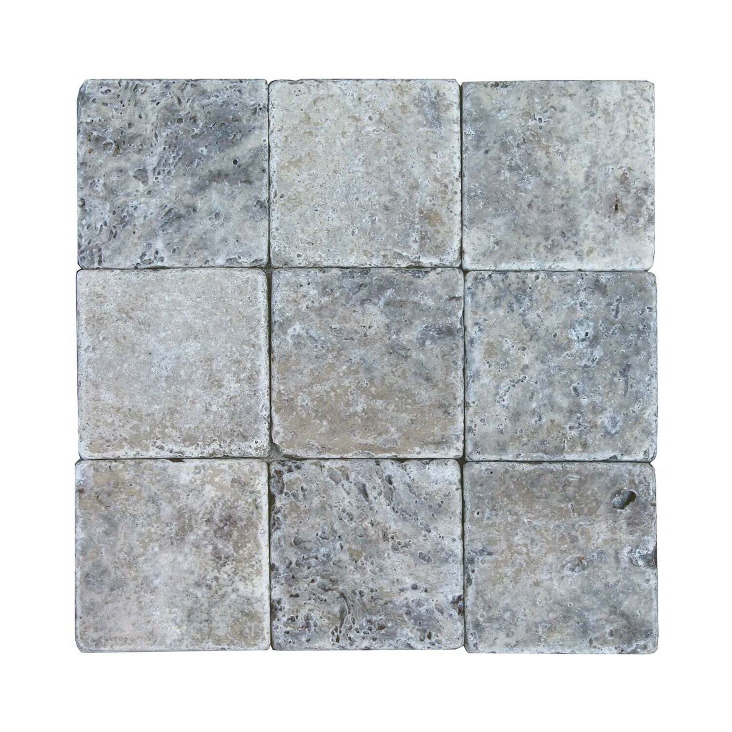 Soci Tile SSK-784 Travertine Silver Tumbled 4X4 Natural Stone - Field Tile