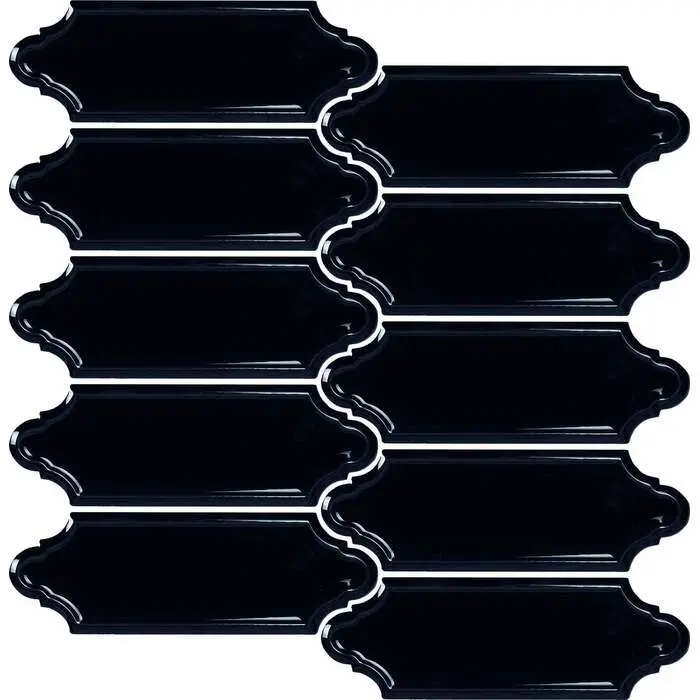 Introducing the elegant Soci Tile Hampton Draper Pattern Onyx Glossy Mosaic Tile, a high-end choice for those seeking a luxurious and sophisticated touch in their home environment. This mosaic tile features a glossy finish and a distinctive onyx color that lends a deep, rich ambiance to any space.