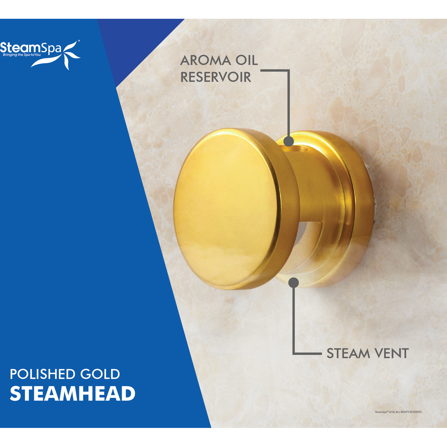 The perfect steam sauna experience is exactly what we had in mind with SteamSpa steam generator packages. Easy to install and even easier to operate these steam generators produce a consistent flow of soft and soothing steam thanks to the cleverly designed dual tank technology while minimizing any distracting operational noises. Compact in size and design they also feature the Auto Drain system that aids in making maintenance easier by purging the generator of any excess water/minerals that would later contribute to issues down the line. All in all you get a safe, quite, reliable, luxurious steam sauna experience with our compact powerhouse of a steam generator.For more information please call 1-800-856-0172Includes a 9kW QuickStart Acu-Steam Bath Generator, Dual Control Panel, Steamhead, Chromatherapy Light, Filter, Pressure Relief Valve, Built in Auto Drain, Plumber Ready Quick Connection Kit, and FREE Bottle of Aroma Scented OilQuickStart technology allows steam generation in about a minuteWhisper quiet operationContinuous uninterrupted steam flowMaximum volume rating: 255 cu ft.Power: 9kW, 240V, 38AGold FinishControl Panel System operates all generator functionsAromatherapy releases soothing fragrances through the mist surrounding you with your favorite aromatic scentChromatherapy three color mode LED light will create a soothing, therapeutic environment in bath and shower roomsWater Filter reduces rust, contaminants and other debris from entering the system which helps prolong the life of the steam generator.Built in auto drain purges the generator after each steam bath substantially reducing the chance of mineral, and rust build-up, prolonging the generator's operating life.Ships from manufacturer within 24 hours