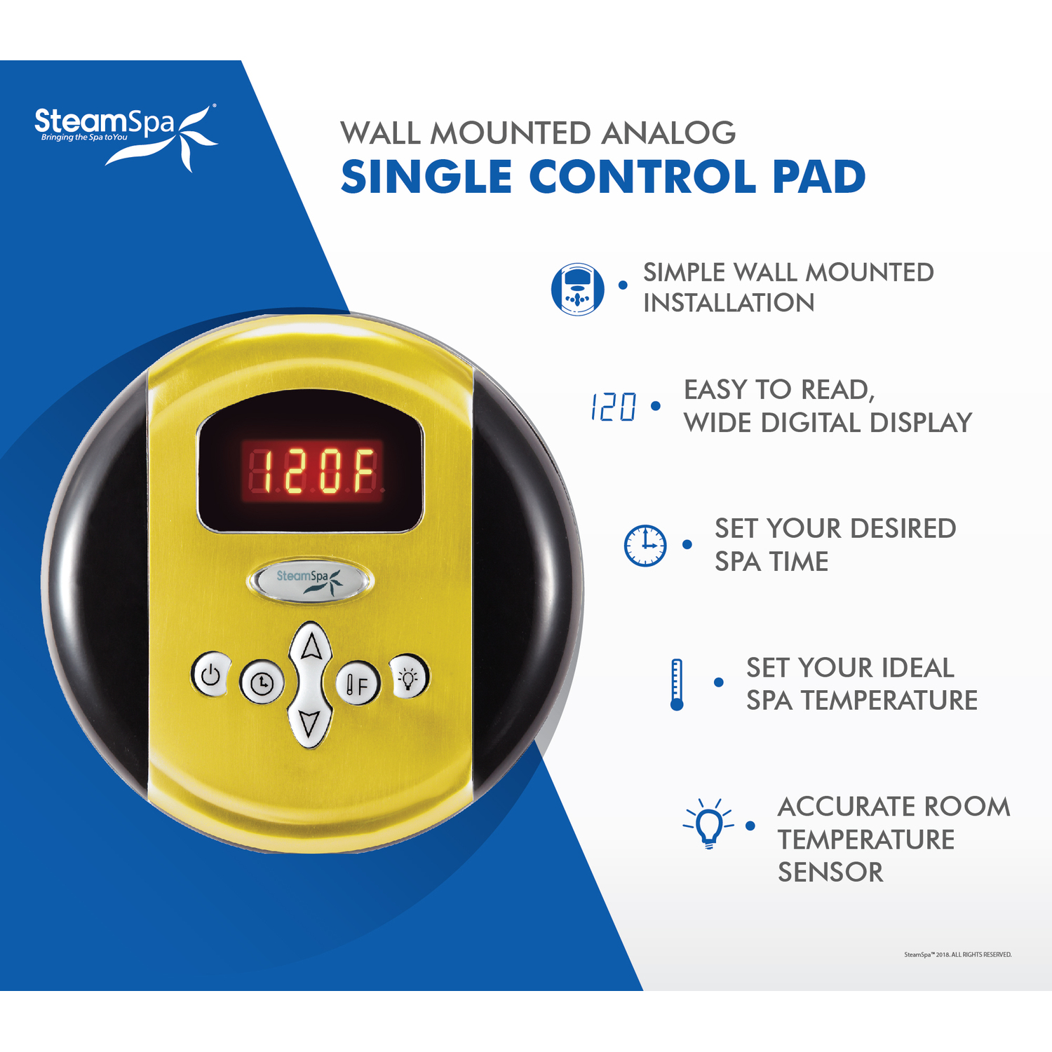 Steam Spa SteamSpa Premium 12 KW QuickStart Acu-Steam Bath Generator Package with Built-in Auto Drain in Gold, 191042059719, PRR1200GD-A