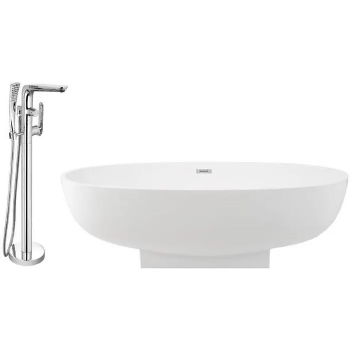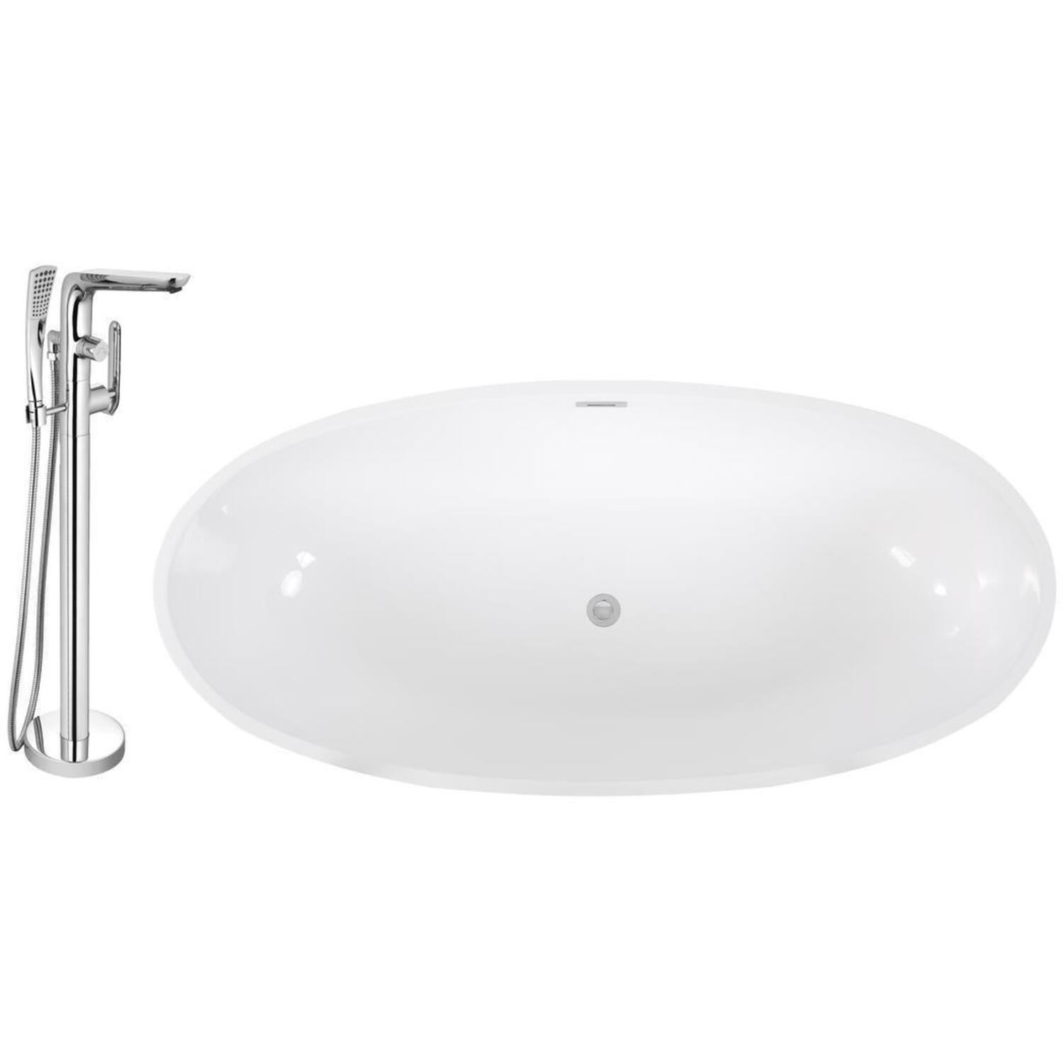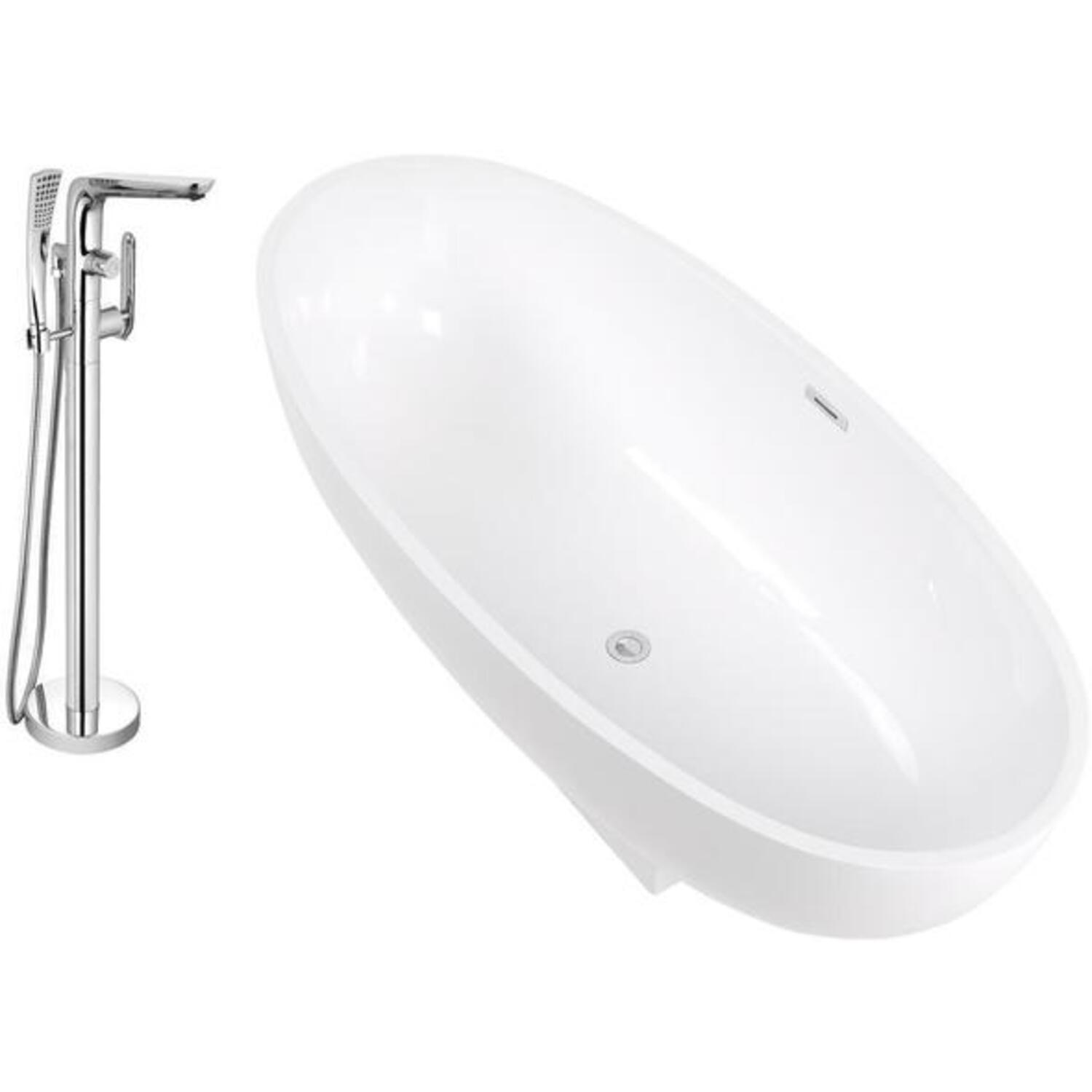 This Streamline 67" modern deep soaking bathtub with a polished chrome tub faucet is just what your bathroom needs. It was designed with a beautiful white gloss finish and an internal drain to keep its sleek design. This soft curved bathtub can hold up to 78.7 gallons of water.