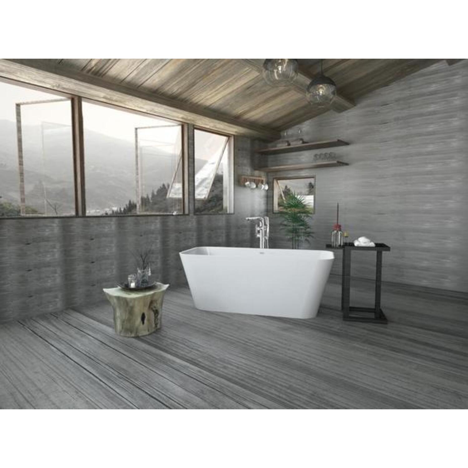 Simple yet modern, this Streamline 59" free standing deep soaking bathtub with a polished chrome tub faucet can accentuate any bathroom. Designed with an internal drain and a white glossy exterior for that clean simple look. This bathtub can hold up to 61.6 gallons of water so you can take a calming soak.