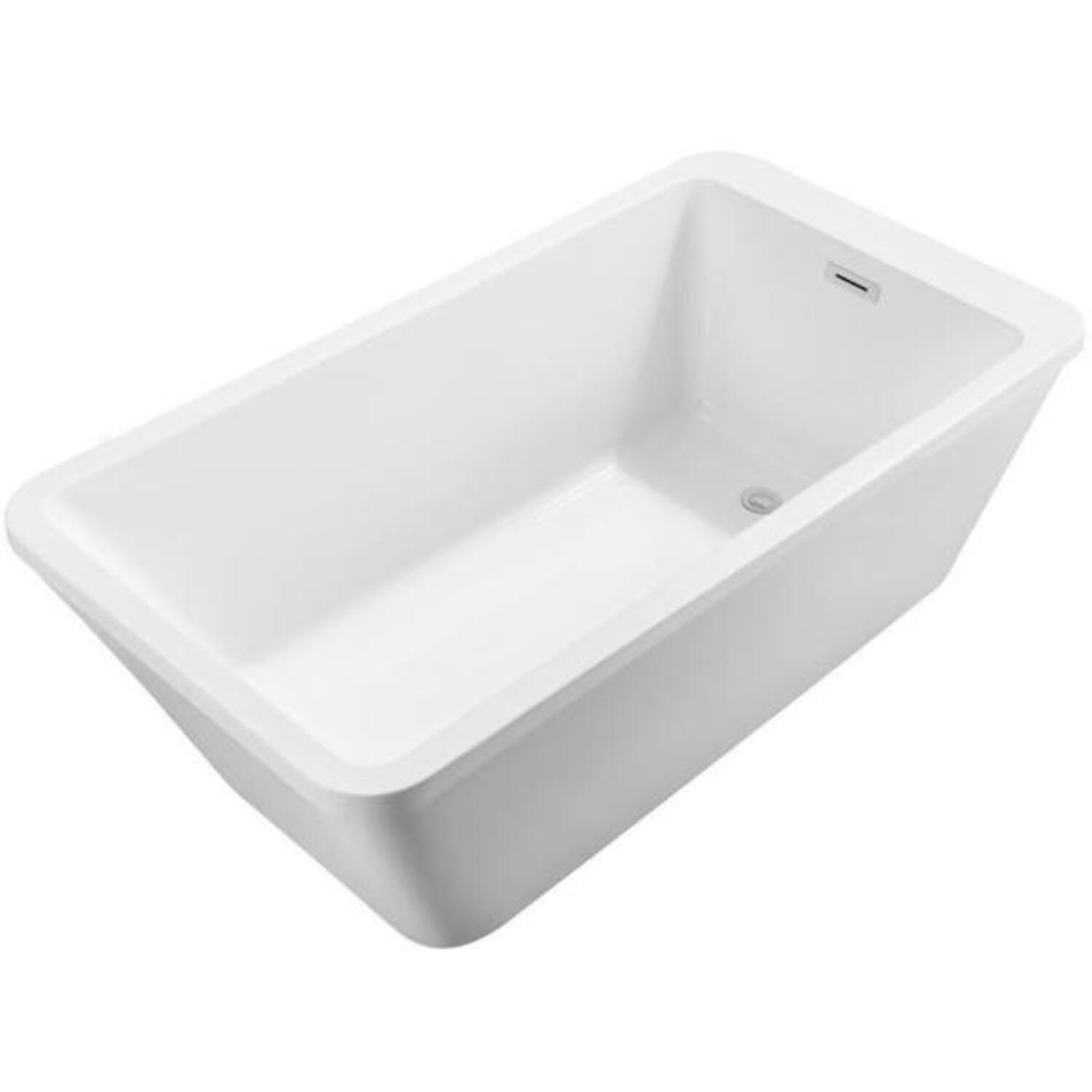 Simplicity meets luxury in this Streamline 60" white glossy deep soaking bathtub. Contoured for comfort this bathtub can add back support with its angled curves. You can soak in comfort as this tub can fit up to 66 gallons of water. It is designed with an internal drain to maintain it's simple style.