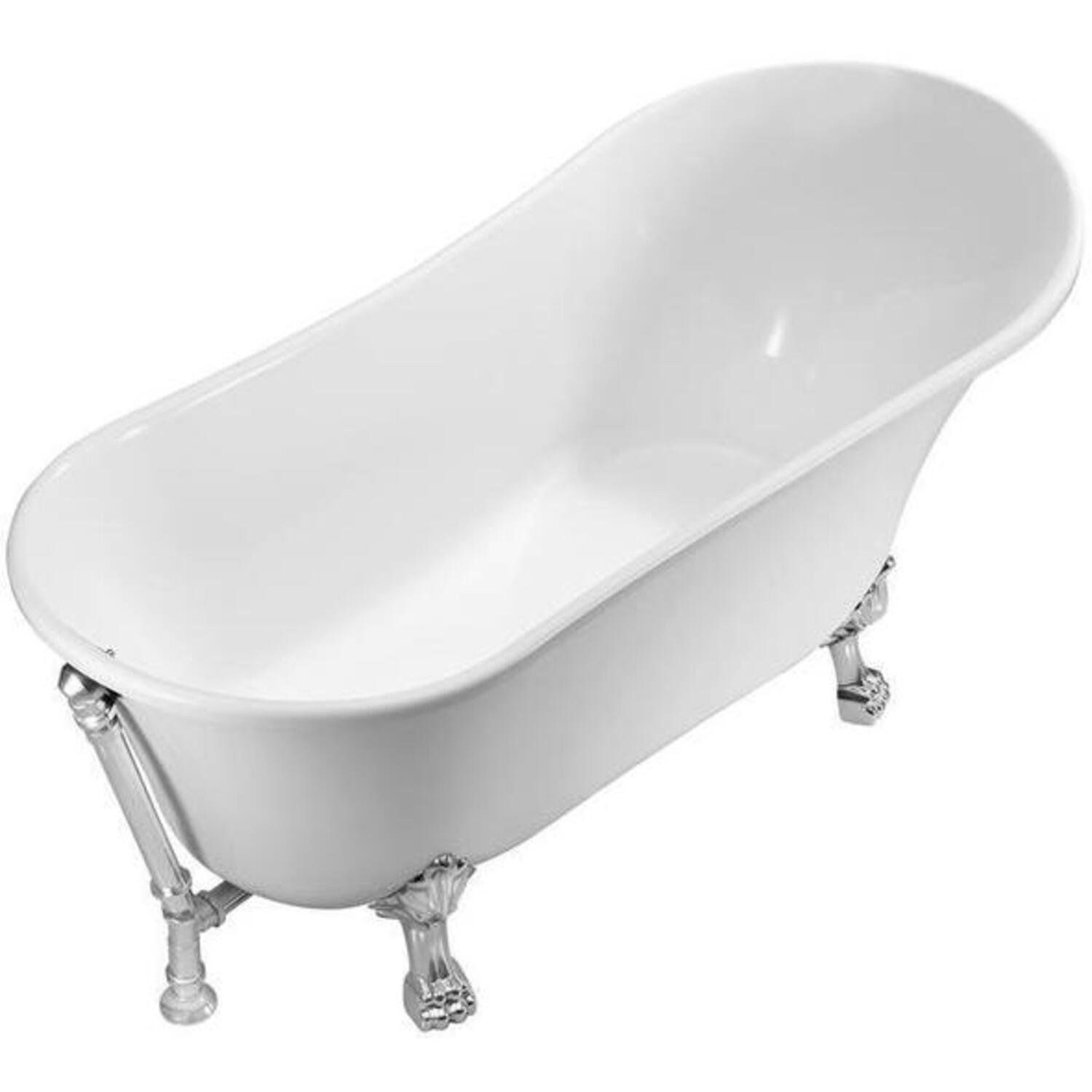 This Streamline vintage slipper style bathtub was designed to give your bathroom that classic timeless look. Its 59" glossy white exterior pairs up nicely with it’s detailed chrome claw feet. The chrome exterior drain adds a finishing touch to that vintage look. You can submerge in a relaxing bath as this tub can hold up to 69 gallons of water.