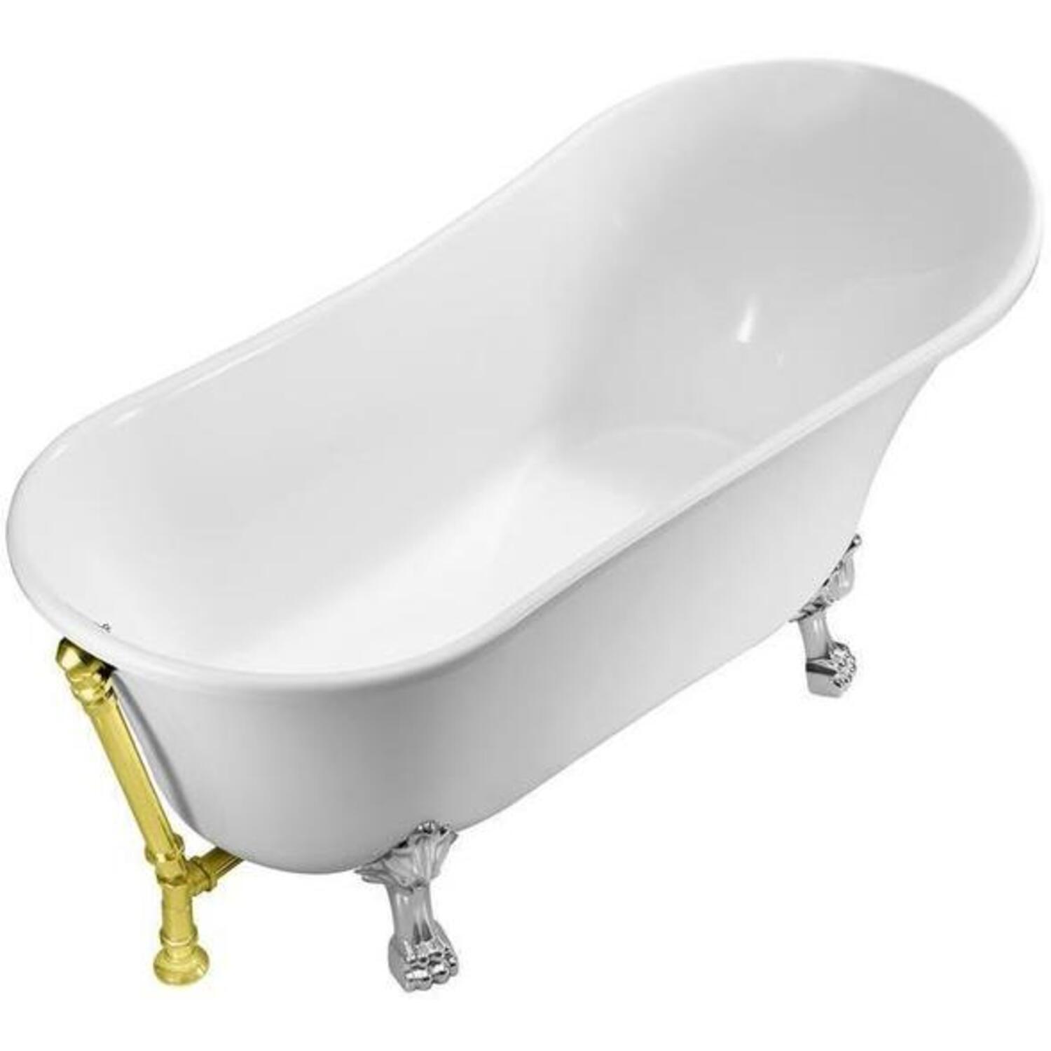 This Streamline vintage slipper style bathtub was designed to give your bathroom that classic timeless look. Its 59" glossy white exterior pairs up nicely with it’s detailed chrome claw feet. The gold exterior drain adds a finishing touch to that vintage look. You can submerge in a relaxing bath as this tub can hold up to 69 gallons of water.