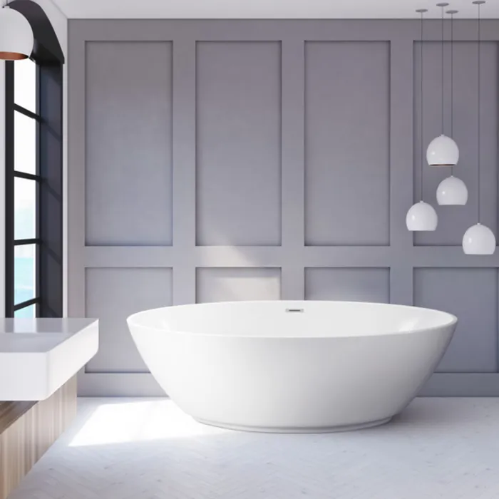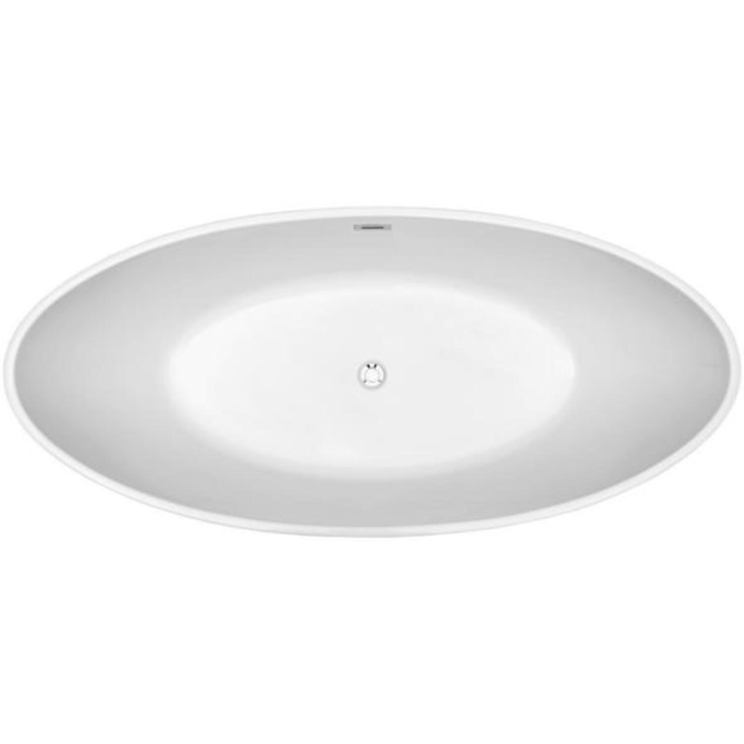 Soak your troubles away in this Streamline modern spacious bathtub. It's 63" Ellipse shape provides room for a deep soak. This tub can hold up to 55 gallons of water. It's glossy white exterior makes it stand out in any bathroom. It is designed with an internal drain to maintain the modern look.