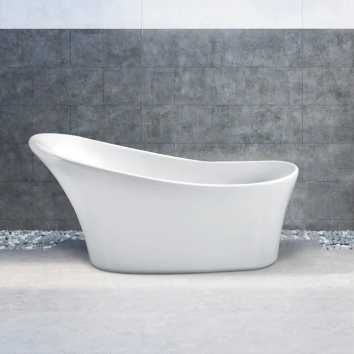 This Streamline 63" modern freestanding slipper tub can hold up to 61 gallons of water. It's sleek shape and glossy white finish will add a luxurious feel to any bathroom. This tub is designed with an internal to save space and keep its sleek look.