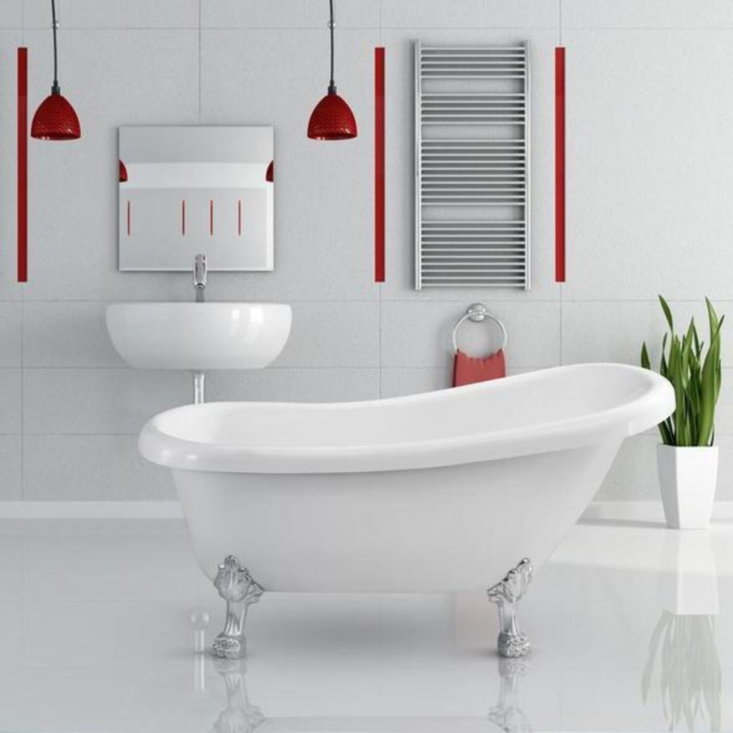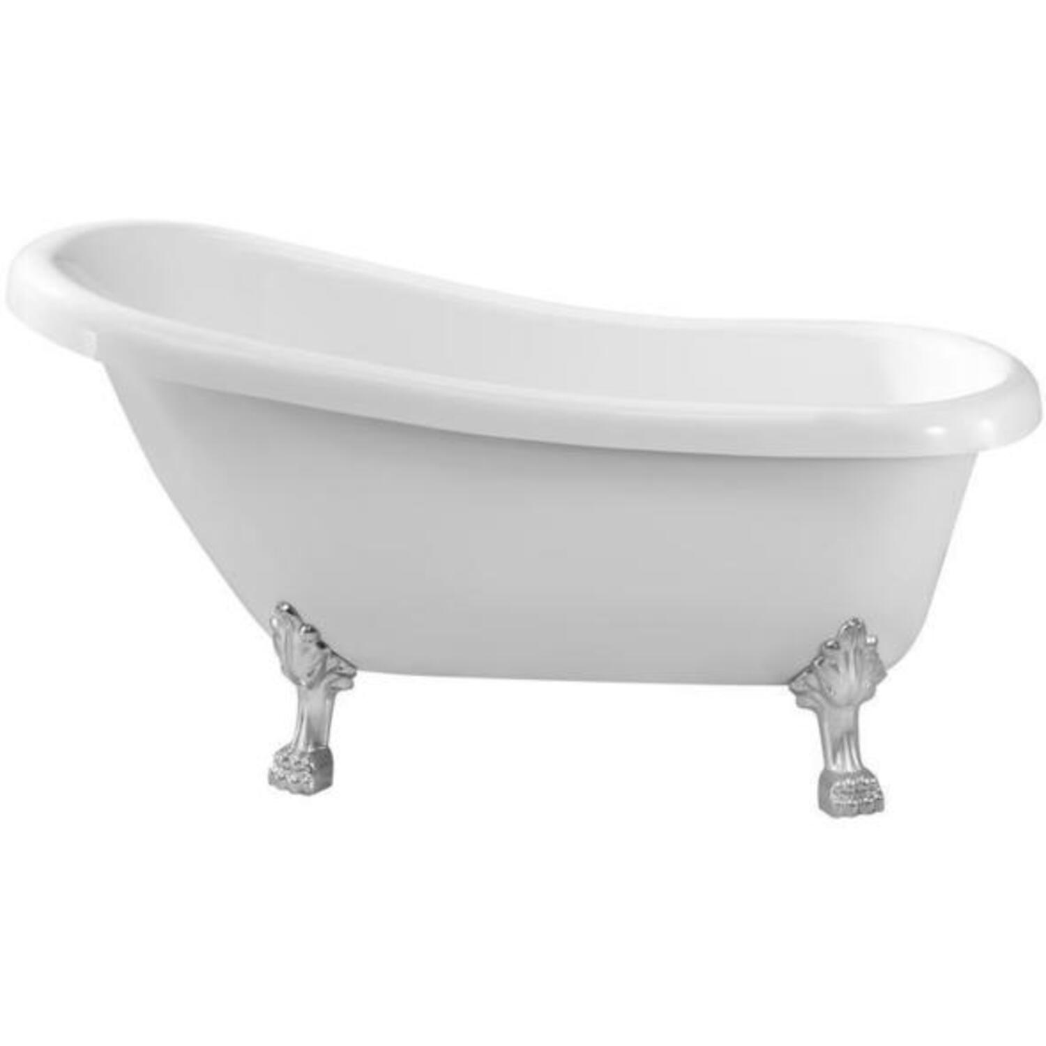 This beautiful Streamline 61" vintage style clawfoot tub will add a classic and luxurious look to your bathroom. Its glossy white finish pairs up perfectly with its intricate chrome clawfoot legs. It's spacious interior can hold up to 48 gallons of water and is designed with an internal drain.