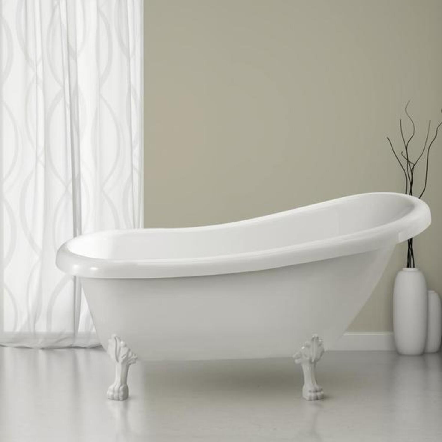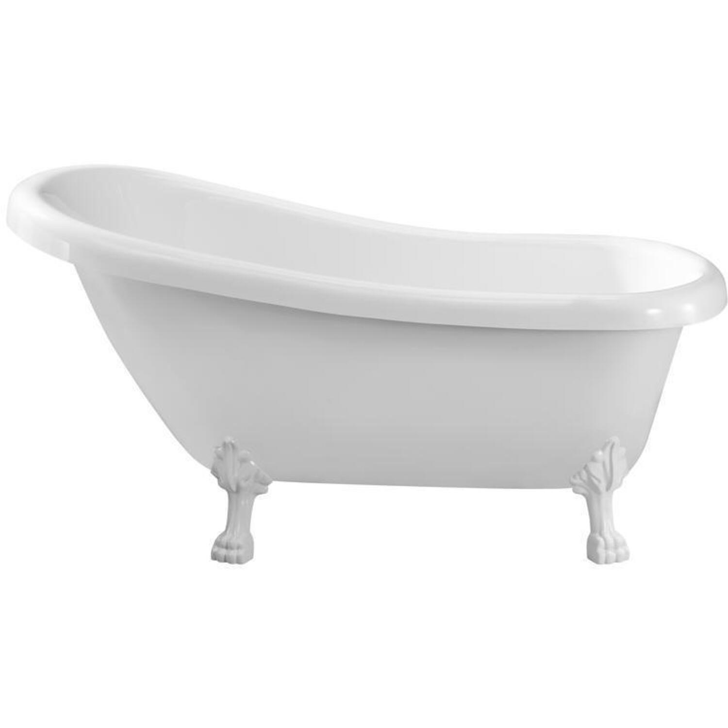 This beautiful Streamline 61" vintage style clawfoot tub will add a classic and luxurious look to your bathroom. Its glossy white finish pairs up perfectly with its intricate white legs. It's spacious interior can hold up to 48 gallons of water and is designed with an internal drain.