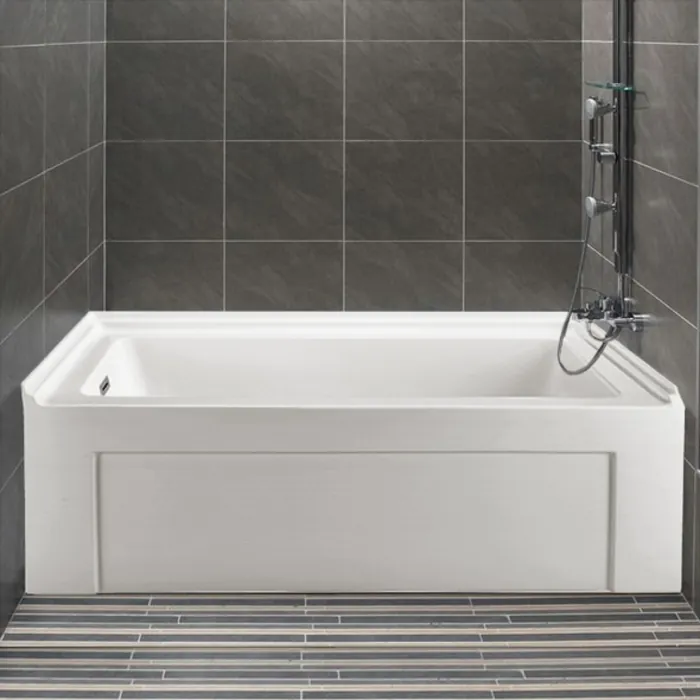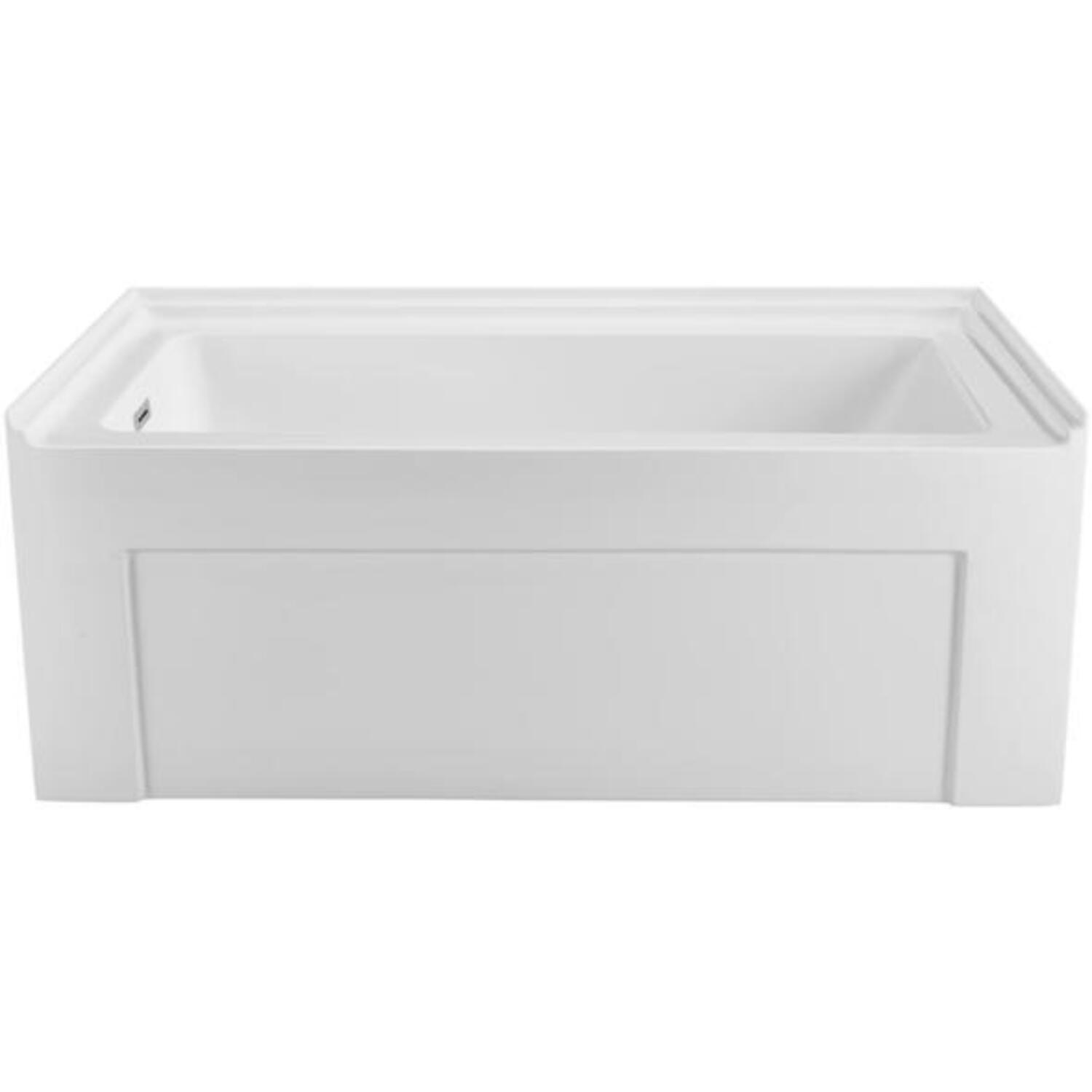 Relax in this Streamline 60" modern alcove bathtub. The white glossy exterior is designed with intricate integrated lines to give it a modern yet simple design. This tub has an internal drain on the left side and can hold up to 69 gallons of water.