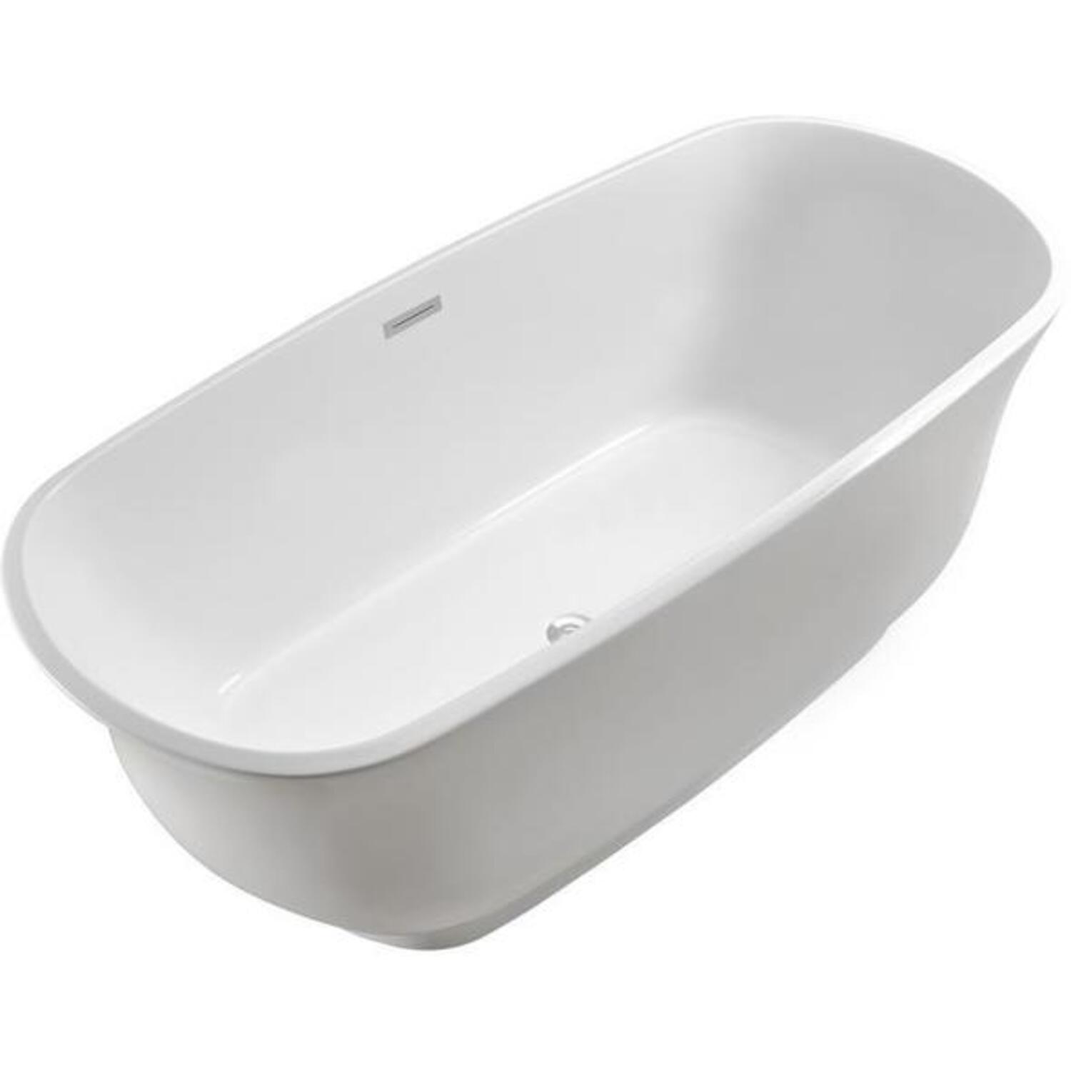Accentuate your bathroom with this Streamline 67" ellipse shaped bathtub. Its white glossy finish and beveled base will give your bathroom a touch of modern luxury. This tub has an internal drain and can hold up to 89 gallons of water.