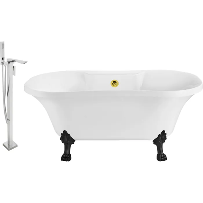 Soak in relaxation in this Streamline 60" vintage style clawfoot tub with a polished chrome tub faucet. Tub's white gloss exterior with black claw feet will accentuate any bathroom. This timeless tub has a gold external drain and can hold up to 53 gallons of water.