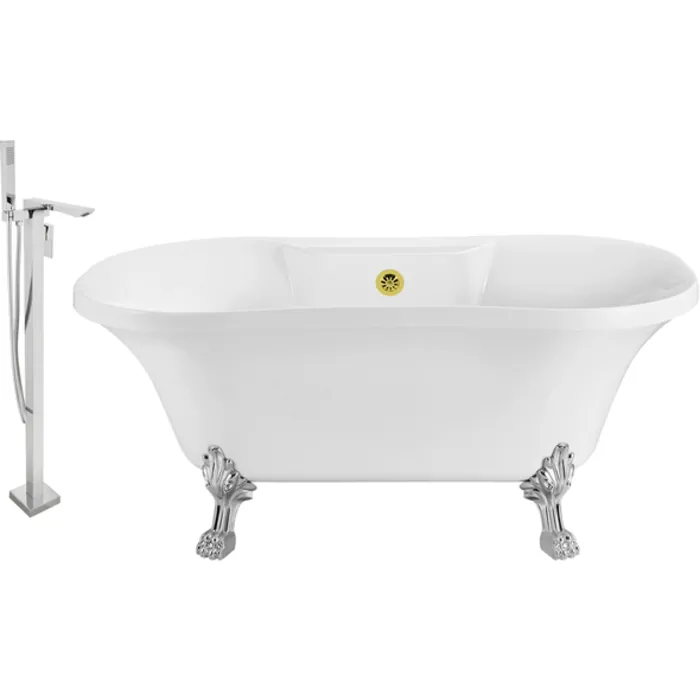 Faucet And Tub Set Streamline 60 inch Clawfoot NH100CH-GLD-140
