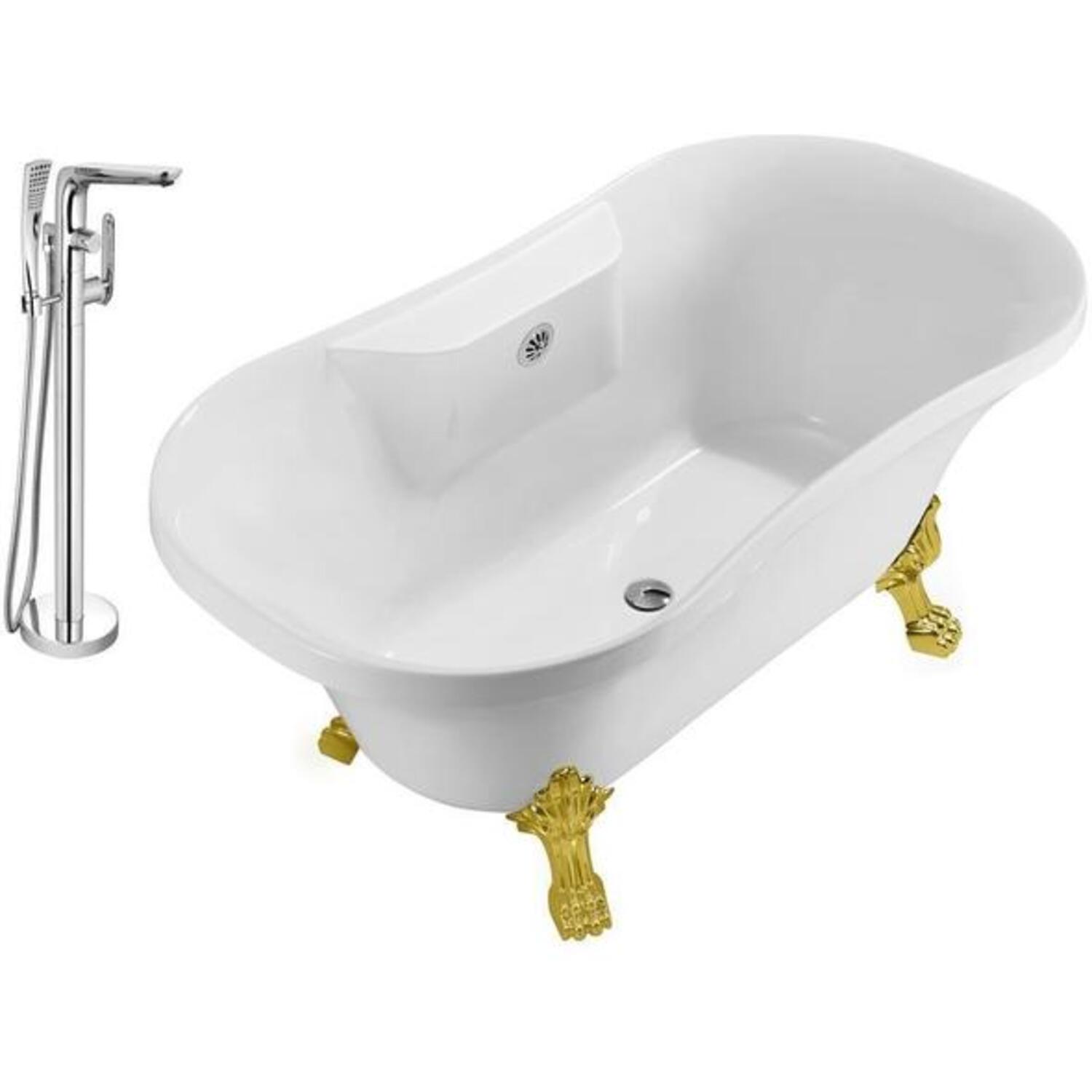 Faucet And Tub Set Streamline 60 inch Clawfoot NH100GLD-CH-120