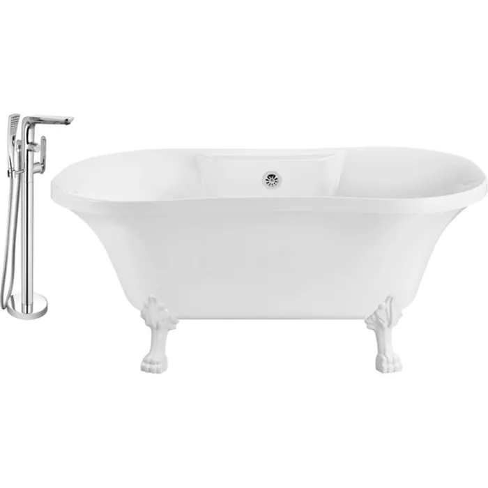 Soak in relaxation in this Streamline 60" vintage style clawfoot tub with a polished chrome tub faucet. Tub's white gloss exterior with white claw feet will accentuate any bathroom. This timeless tub has a chrome external drain and can hold up to 53 gallons of water.