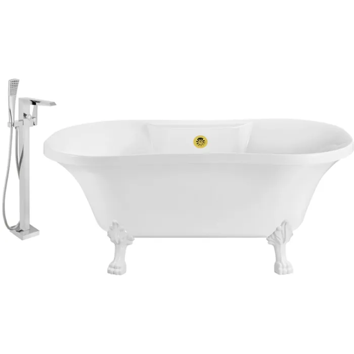 Faucet And Tub Set Streamline 60 inch Clawfoot NH100WH-GLD-100