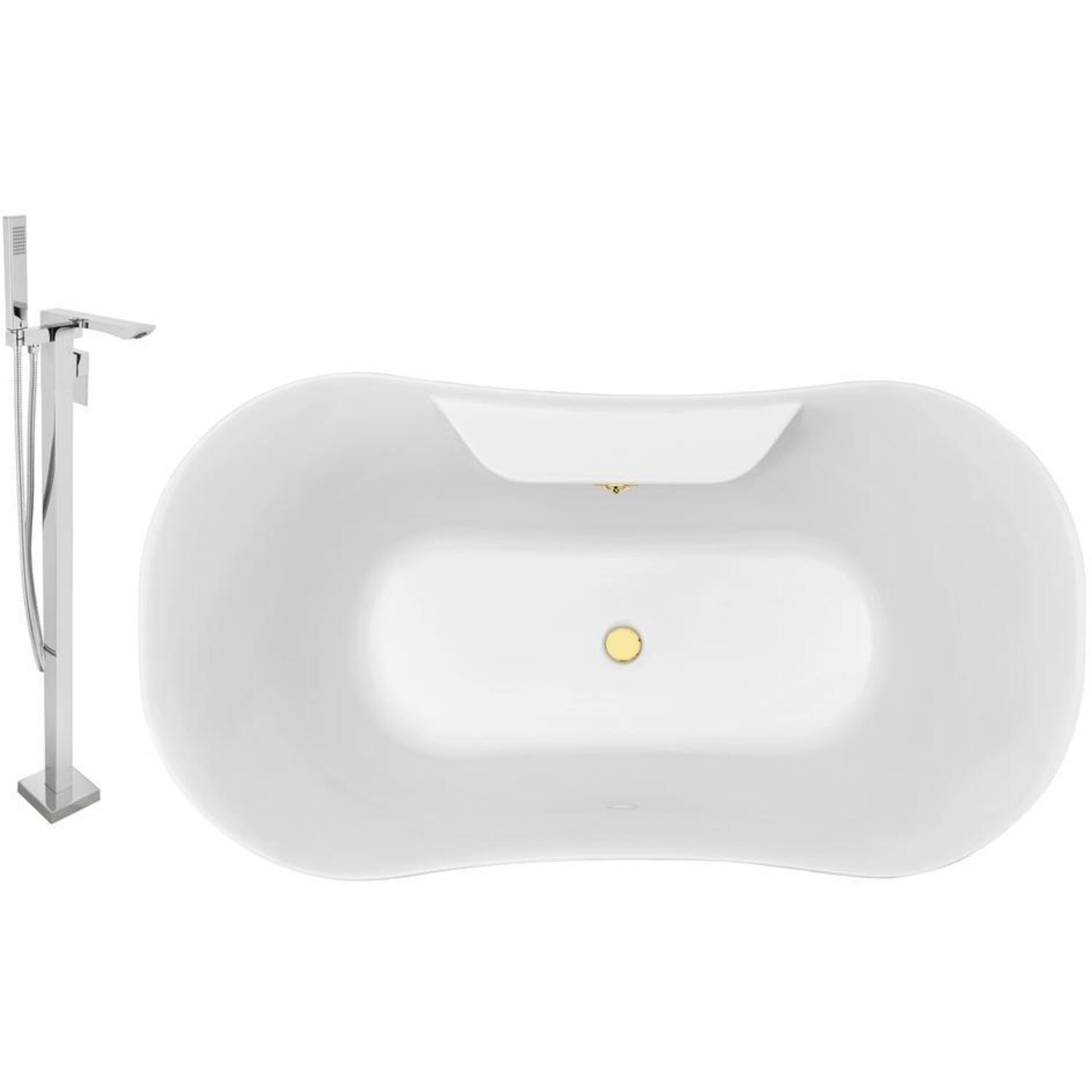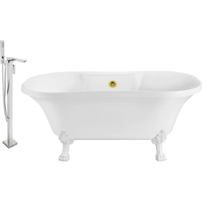 Faucet And Tub Set Streamline 60 inch Clawfoot NH100WH-GLD-140