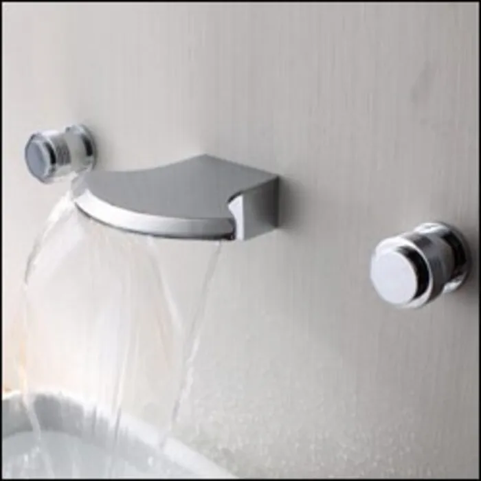 Sumerain S1106CW Wall Mounted Bathroom Sink Faucet With Two Handles Polished Chrome. Polished Chrome Finish. Spout Length: 13.7 cm. Three Holes Installation. Ceramic Valve. 3/8 in water line connections.