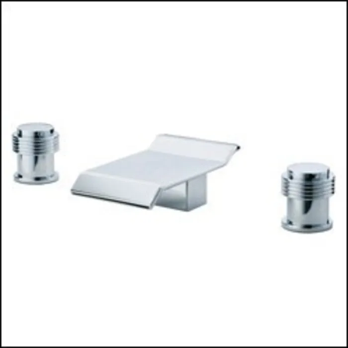 Sumerain S1203CW Waterfall Widespread Lavatory Faucet Polished Chrome. Polished Chrome Finish. Three Holes. Total Height: 5.5 cm. Spout Length: 14.5 cm. Spout Height: 3 cm. Ceramic Valve. 3/8 in water line connections.