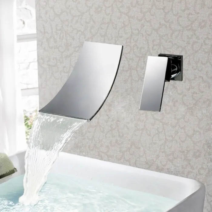 - Waterfall single handle bathroom sink faucet.