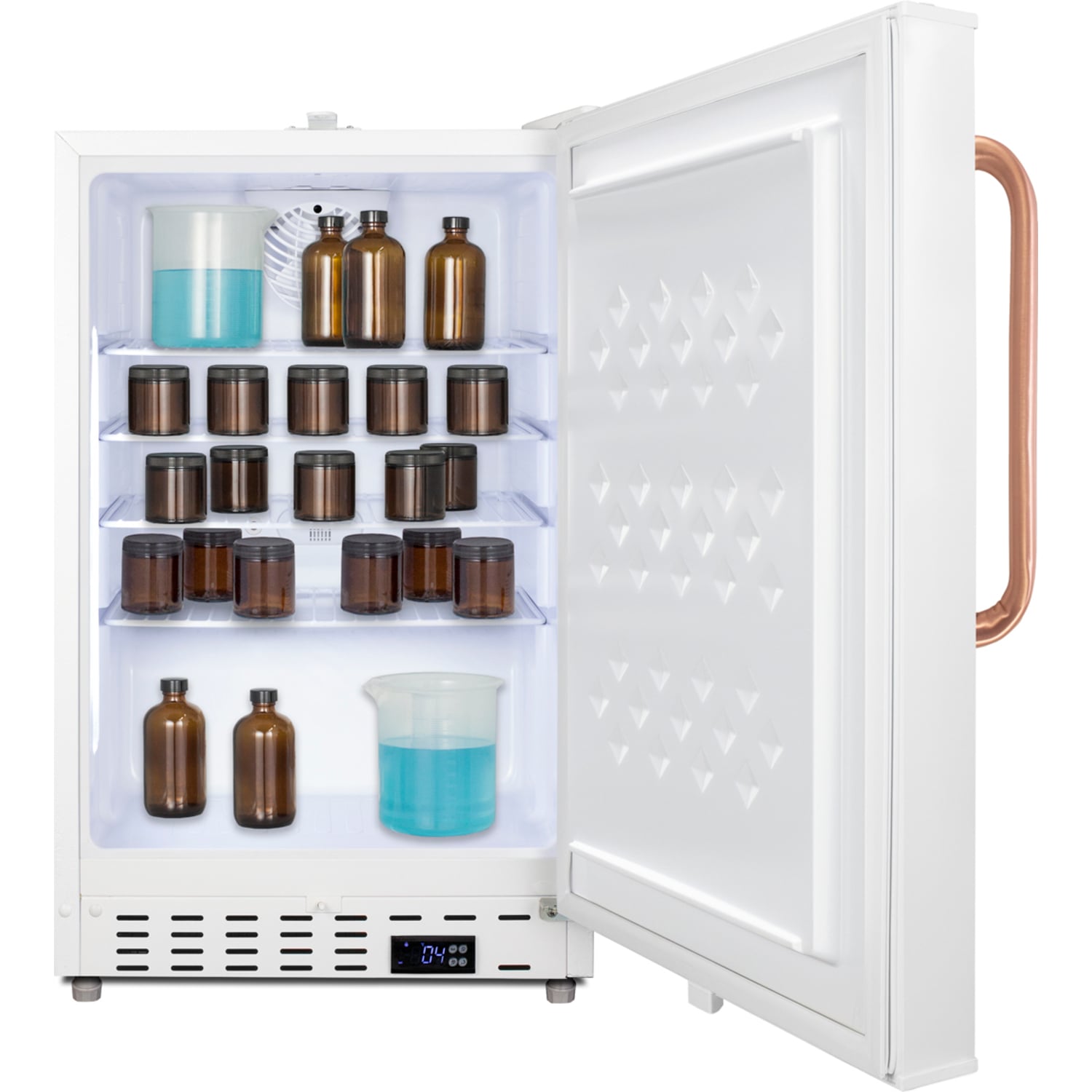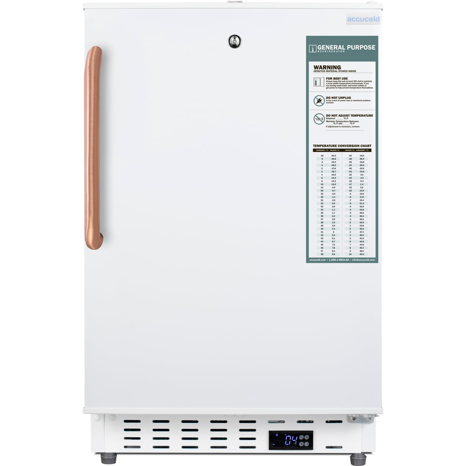 - Built-in undercounter ADA compliant 2 to -8°C commercially approved all-refrigerator in white with pure copper towel bar handle, lock, digital controls, wire shelving, hospital cord with 'green dot' plug, factory installed access port, and automatic defrost operation