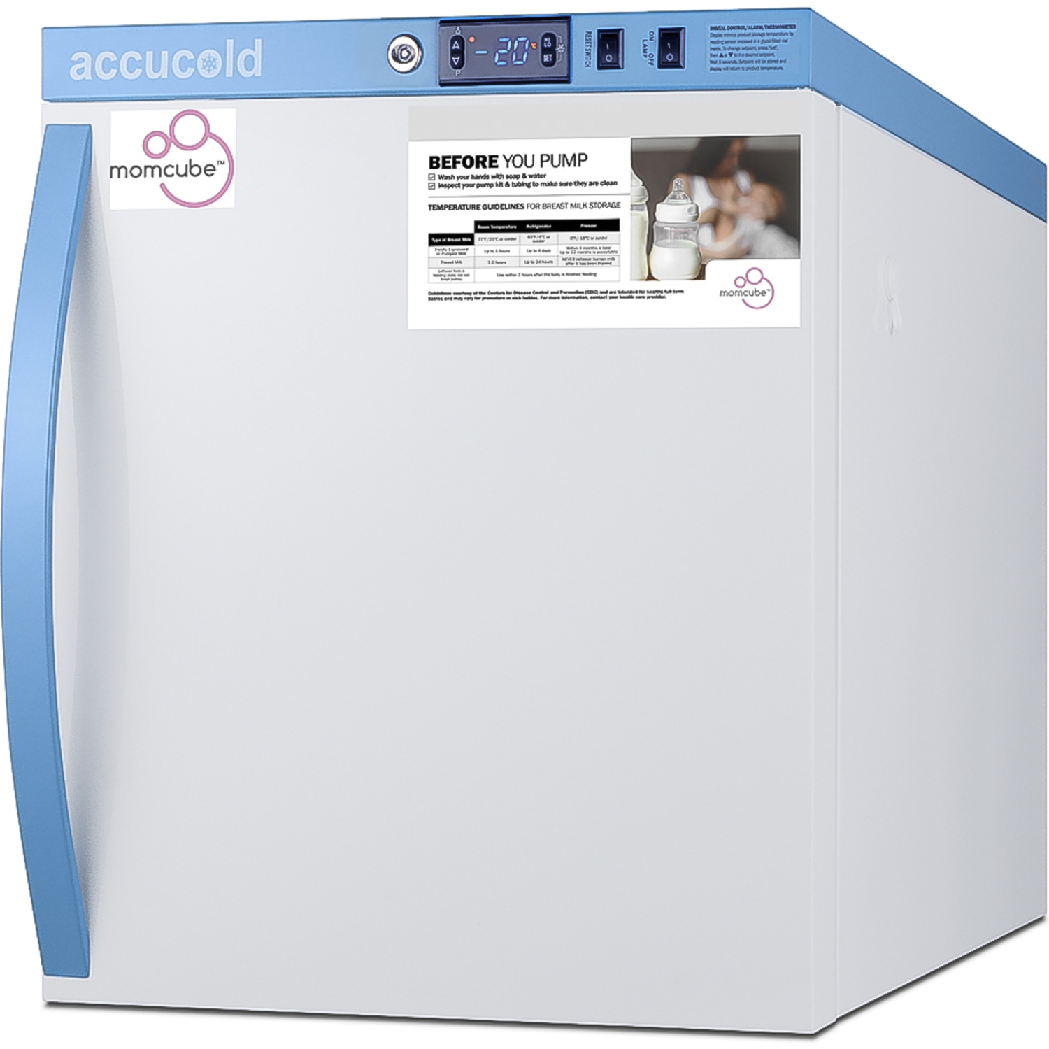 Accucold's MOMCUBE® freezers are designed and purpose-built for breast milk storage. All MOMCUBE® units are laboratory-tested to maintain proper breast milk temperature, as recommended by the CDC and ideal for maternity wards, hospitals, NICUs, employee wellness rooms complying with Section 4207 of the Patient Protection and Affordable Care Act, and other facilities.